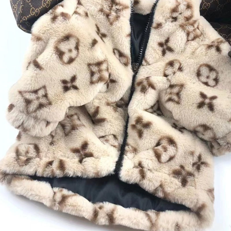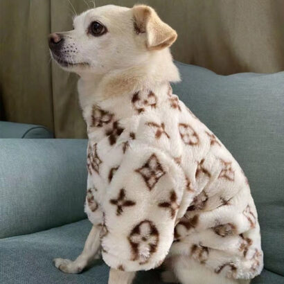 As a highlight of our branded dog clothes collection, this dog faux fur jacket features meticulous tailoring, secure closures, and a luxurious texture that rivals real fur. Whether for special occasions or daily winter walks, this winter dog coat provides both insulation and unparalleled style. It’s more than just a dog jacket – it’s a fashion-forward essential for the discerning pet owner who values both comfort and elegance.