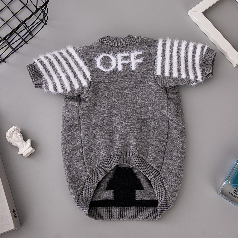 Elevate your pet’s style with our exclusive Off-White Signature Designer Dog Sweater. This piece is more than just a garment; it’s a statement in luxury dog clothes, crafted for the discerning pet owner who values both fashion and comfort.